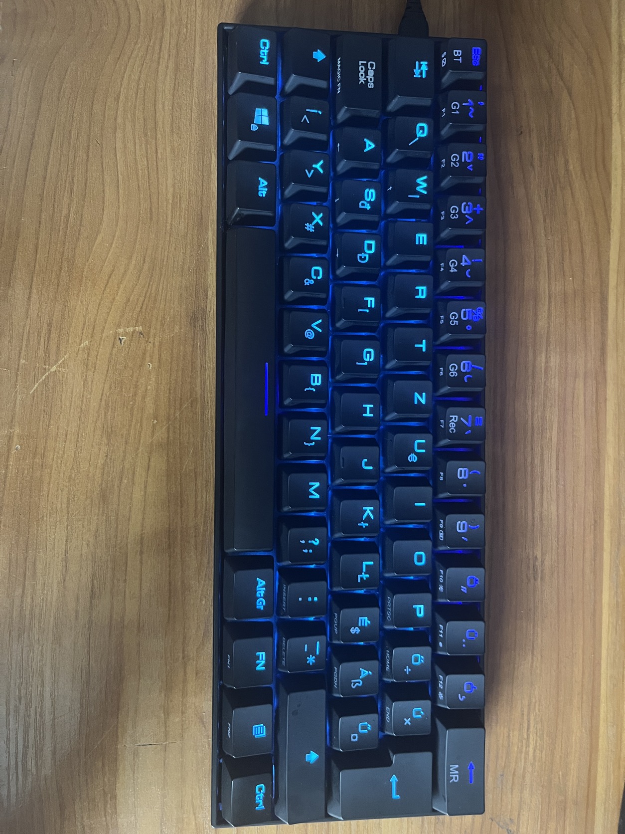 Bluetooth-al is lehet használni, illetve vezetékesen rengeteg színben állítható 60% os billentyűzet (nincs numpad+ az F betűs gombok kombinációval nyomhatók le így egy sor felülről is lekerült) 1x volt kipróbálva.