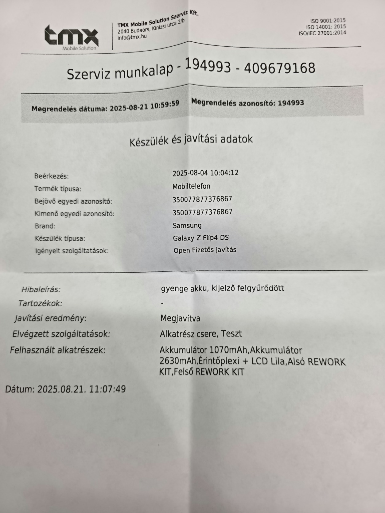 Frissen regalaxy felújított telefon; kapott új komplett kijelzőt zsanérral, új akkukat. A kijelző fedlapos része fóliás. Cserélt alkatrészek garanciálisak.