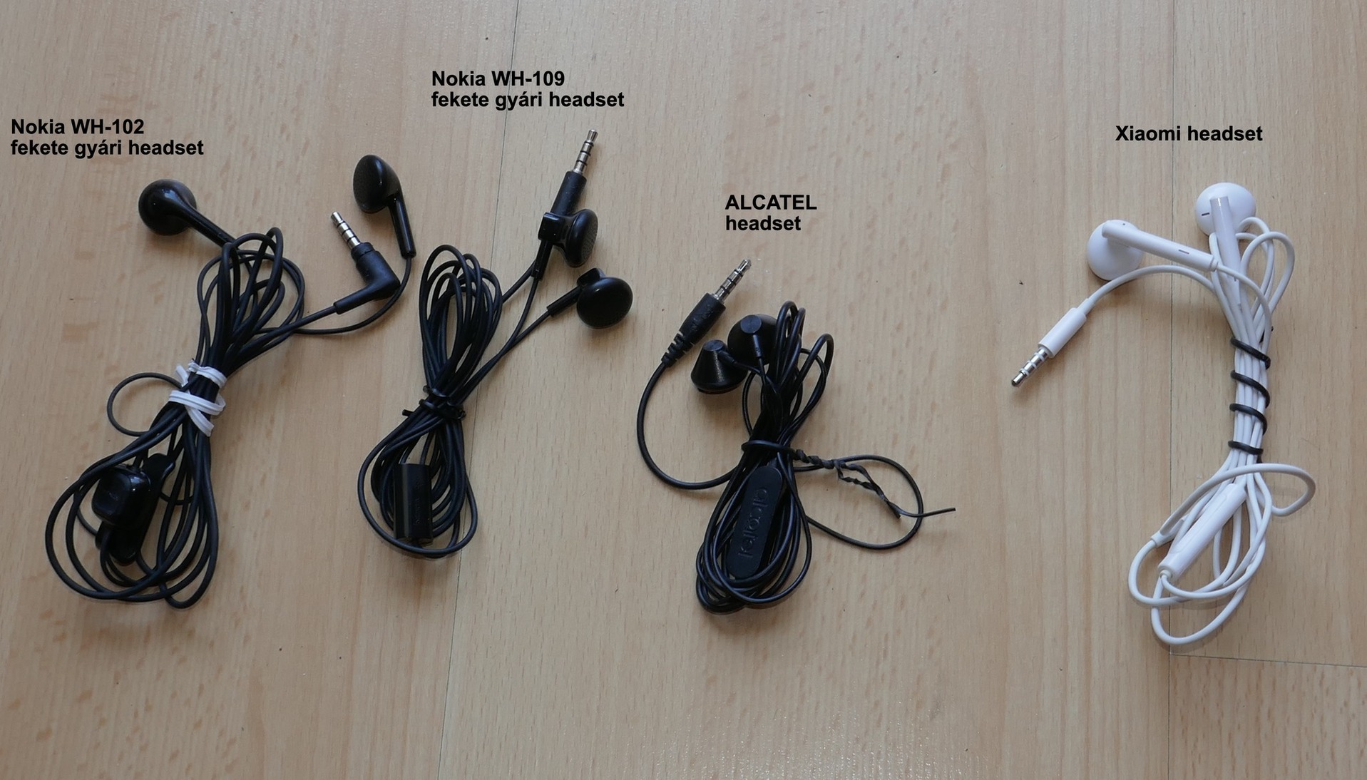 ALCATEL headset és Xiaomi headset.