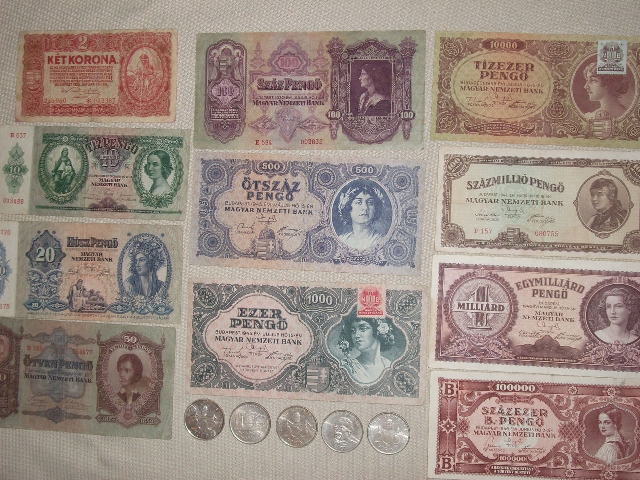 9 db 1 millió pengő – 1945-ös – egy kivételével, teljesen épek