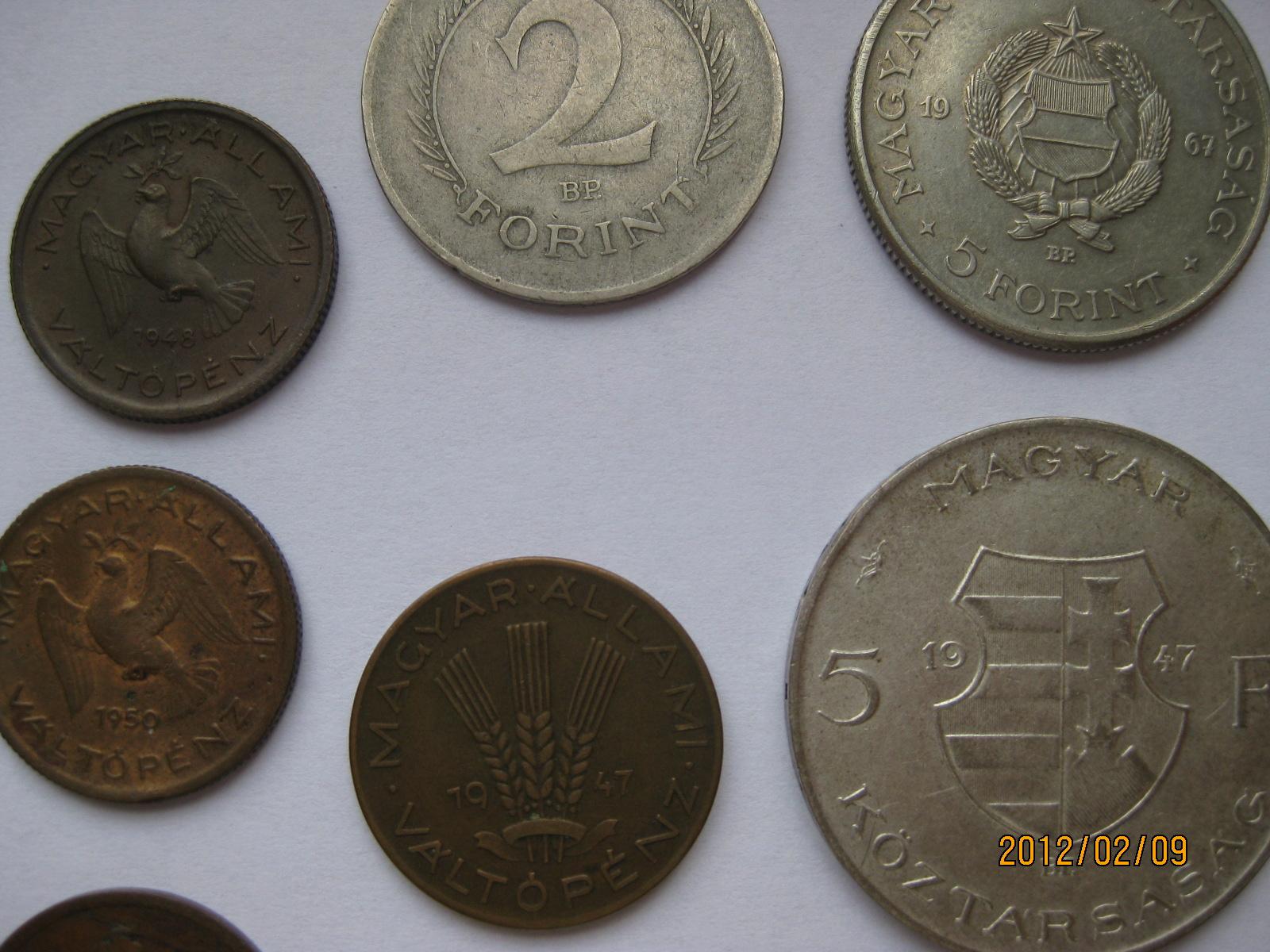 Ezüst 5 pengős 1938-as Szent István királyos, Ezüst 1 pengős 1937-es , illetve 1947-es Kossuth 5 forintos szintén ezüst.