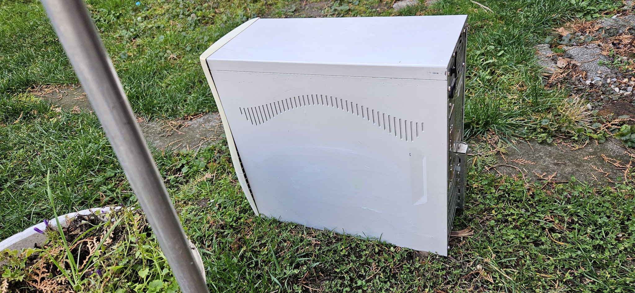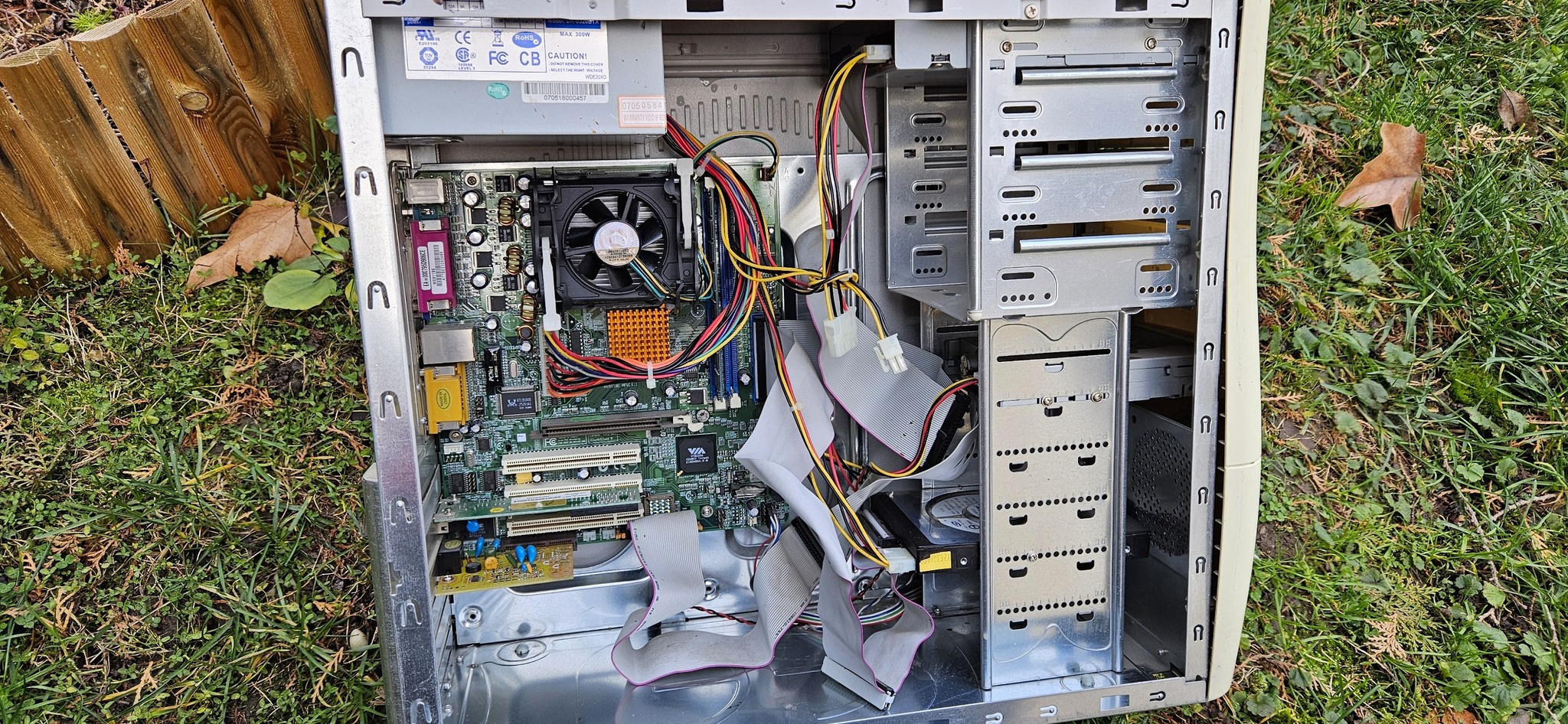 A ház karcos és törött, illetve a front usb csatik sincsenek benne. Az alaplapon van 3 enyhén púpos kondi, ettől függetlenül bekapcsolt, működik. Van benne egy 1,7ghz Celeron, 256mb DDR, 20GB HDD.