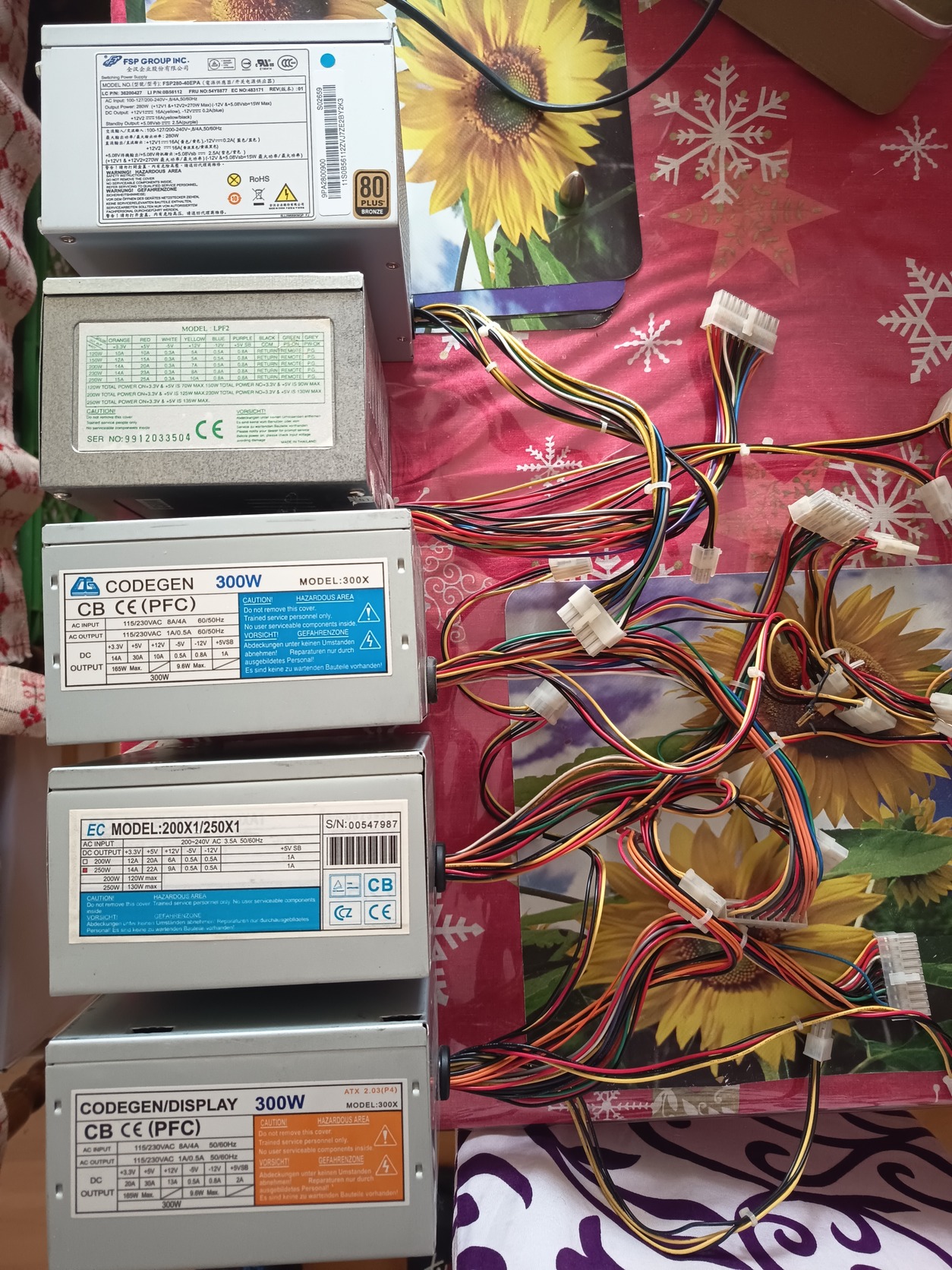 Codegen 300w 20pin power,4pin cpu,4xmolex 1x floppy. 1500ft