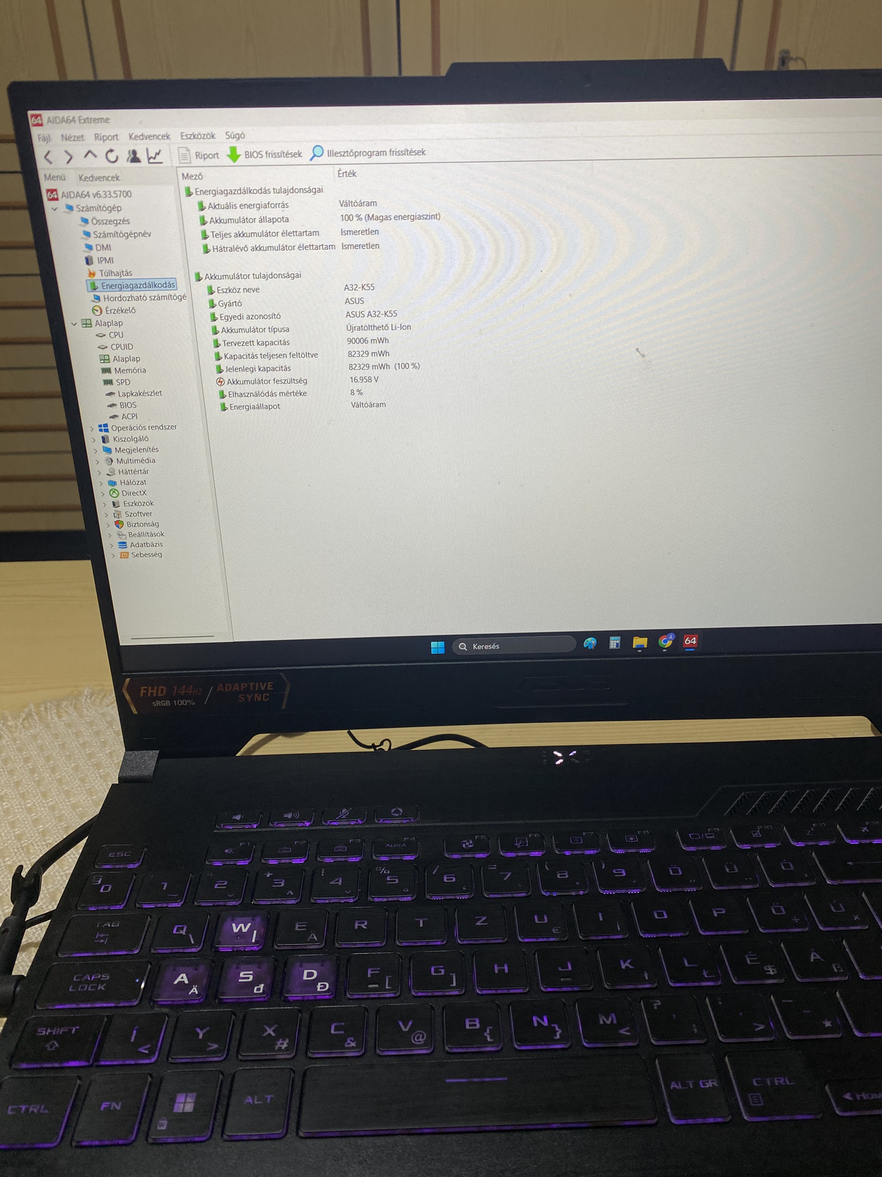 Kijelző: 15,6” FHD+ (144 Hz, IPS, Adaptive-Sync)