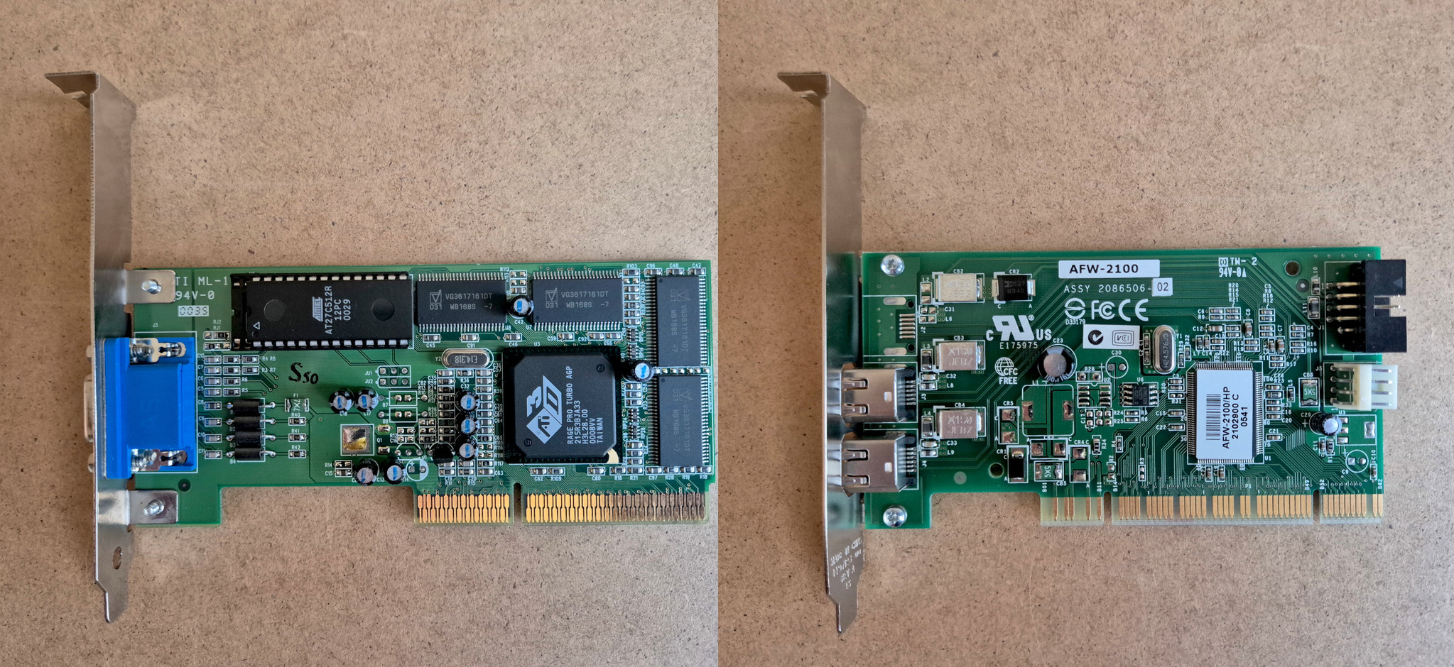 Eladó a címben és a fotókon szereplő AGP video kártya, és PCI Firewire kártya.