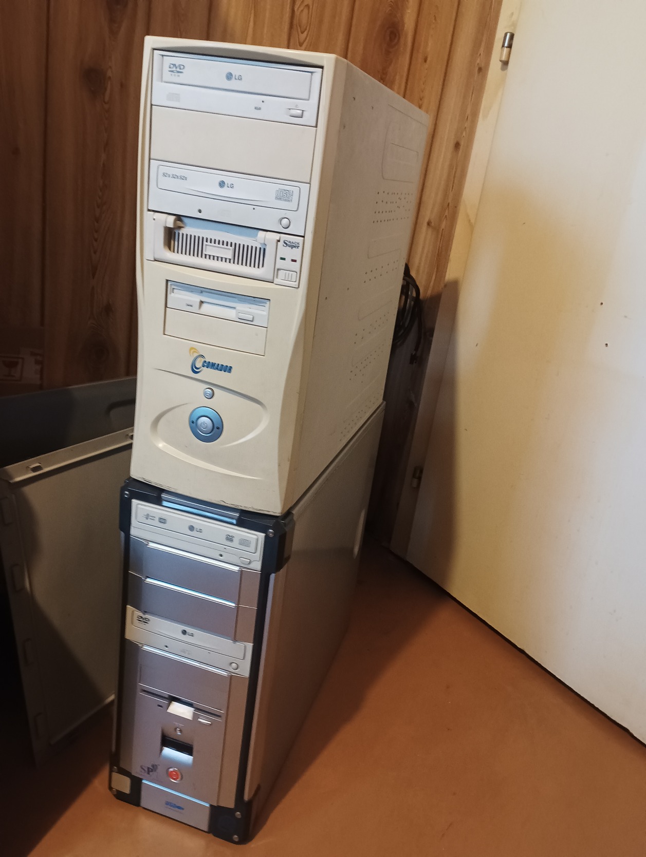 Floppy, CD/DVD bennük van, IDE rack...