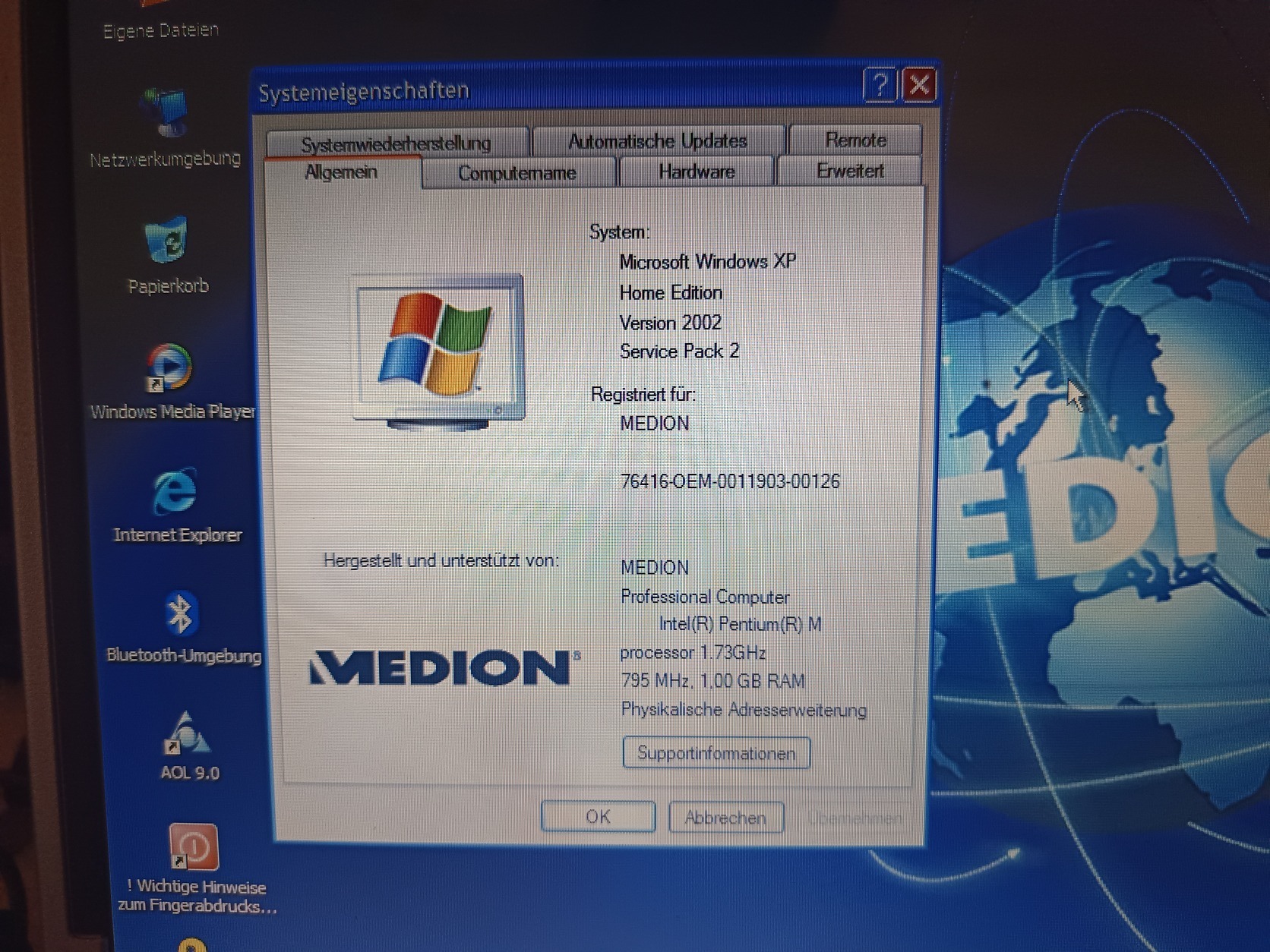 Medion MD 96500 Pentium M 1.7GHz, 1Gb ram, 15" 1280*800, Ati Radeon X700xl 128Mb, dvd-rw, nagyon sok extra: ujjlenyomat olvasó, SD kártya olvasó, CF kártyaolvasó, infra, Bluetooth, SP/dif out, 5.1 hangkártya, telepített (gyári német recovery DVD) xp, stb. Akku pár percet bír : 20eFt