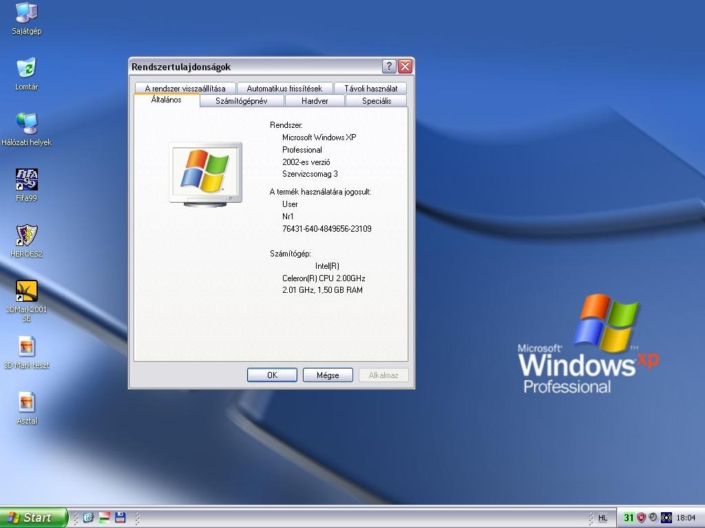 A gép tökéletesen működik, tesztelt, minden szükséges driver telepítve, Windows XP operációs rendszerrel és néhány hasznos programmal, játékkal.