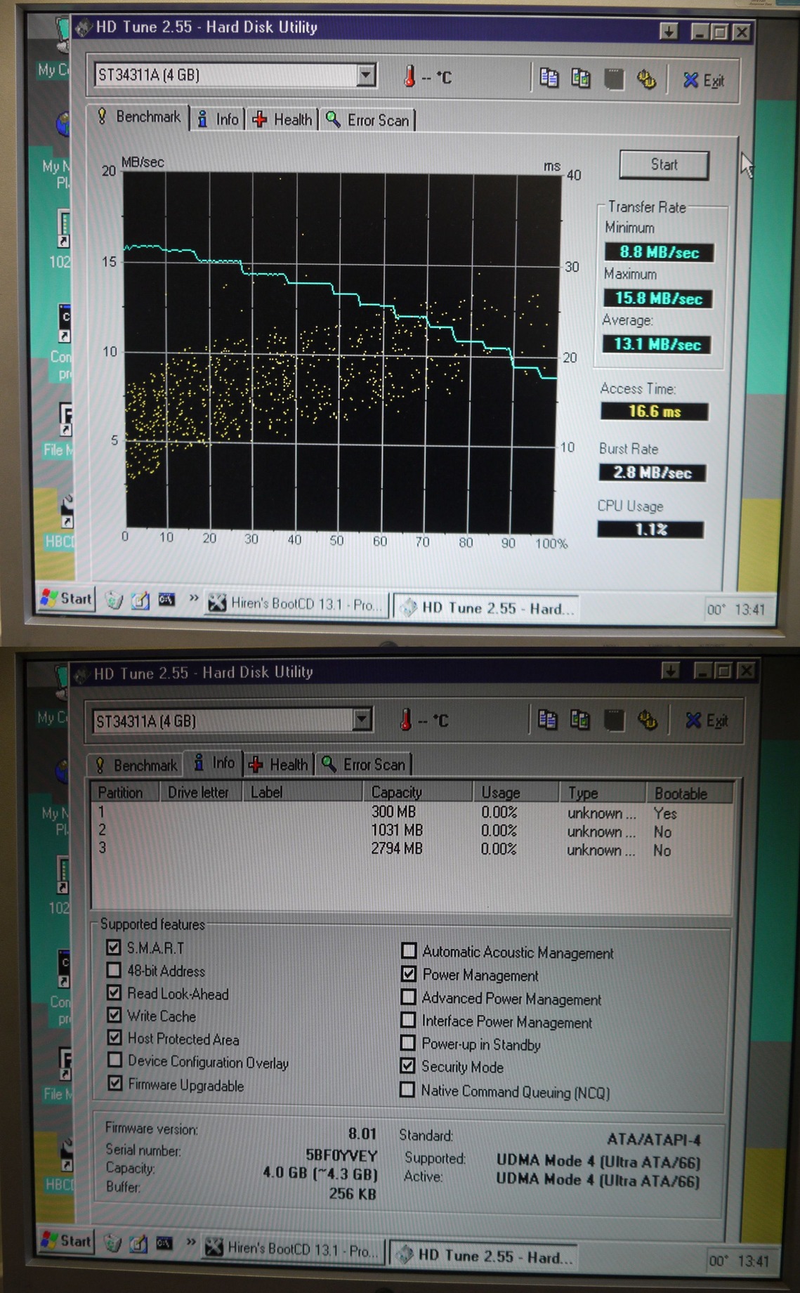 Seagate ST34311A IDE HDD, 4.3 GB, van már némi fémes "menetzaja", de 100/100-as, hibátlan, bad sector mentes.