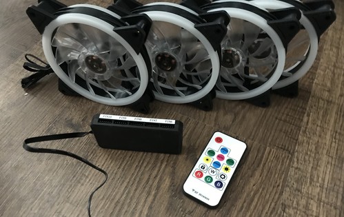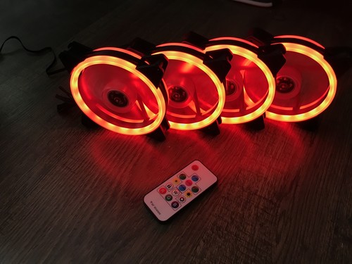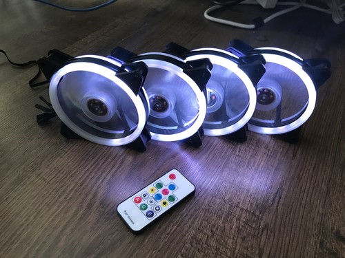 Eladó 4DB 12cm-es RGB ventilátor a hozzá tartozó csavarokkal, adapterrel és egy távírányíróval. Kipróbálási garancia van rá.