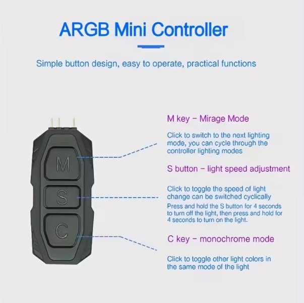Mini RGB ARGB Kontroller 5V 3-tűs SATA Tápegység