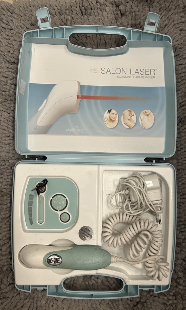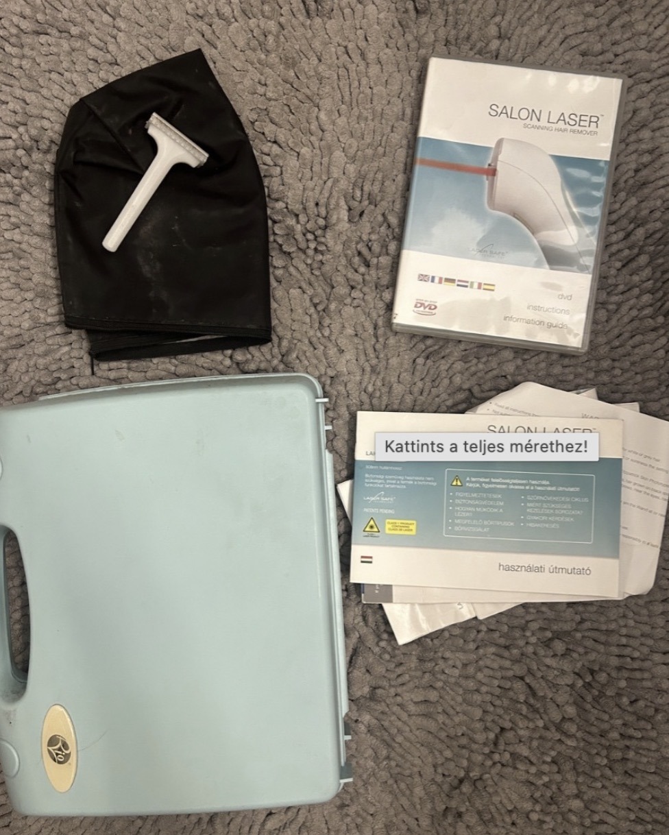 Keveset használt lézeres szőrtelenítő szett, használható az arcon, hónaljon, bikinivonalon és a lábakon, érzékelők, biztonsági kulcs és kódok segítik a könnyű és biztonságos használatot.