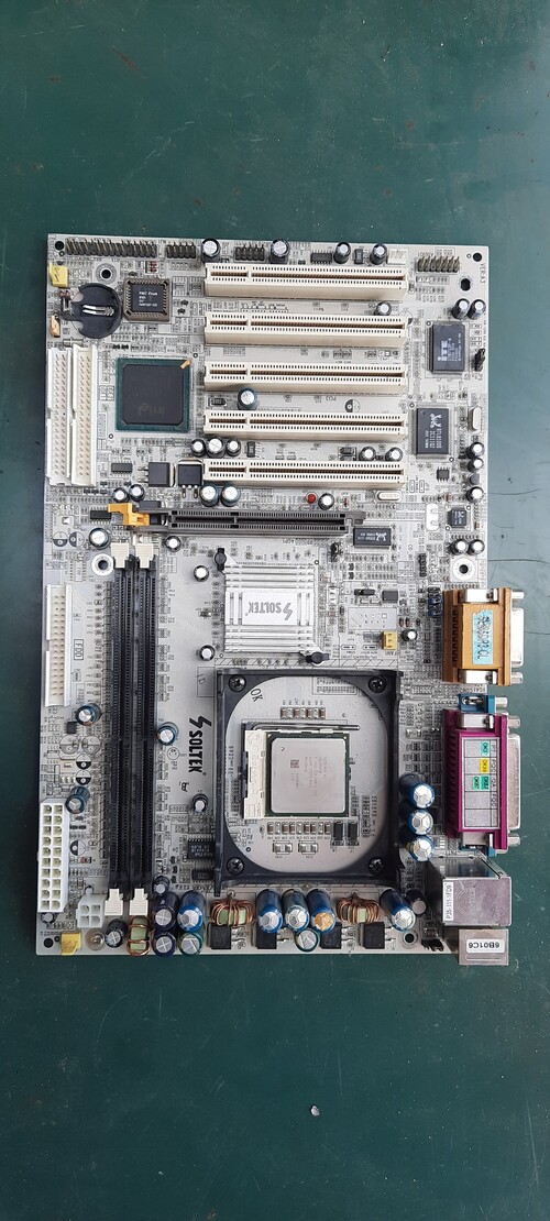 A lapok javításra szorulnak, kondenzátorok cserések. Videókártyán a hütő nem eredeti. Egyik lapon a hűtő keret és ide port műanyagja sérült. Hátlapjuk nincs meg. A lapokba valami celeron proci is van, nem tudtam tesztelni őket.