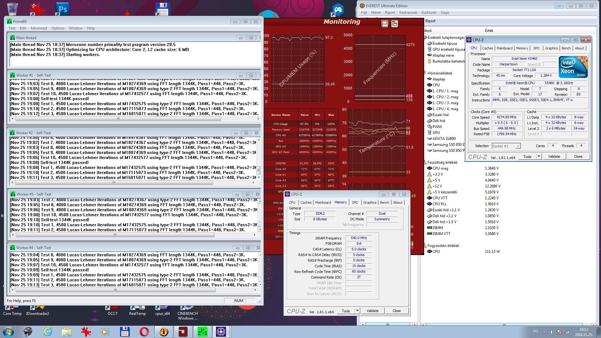 A meghirdetett félkonfigban stabil 1080 MHz 5-5-5-15 időzítések és 2.1V feszültség mellett.