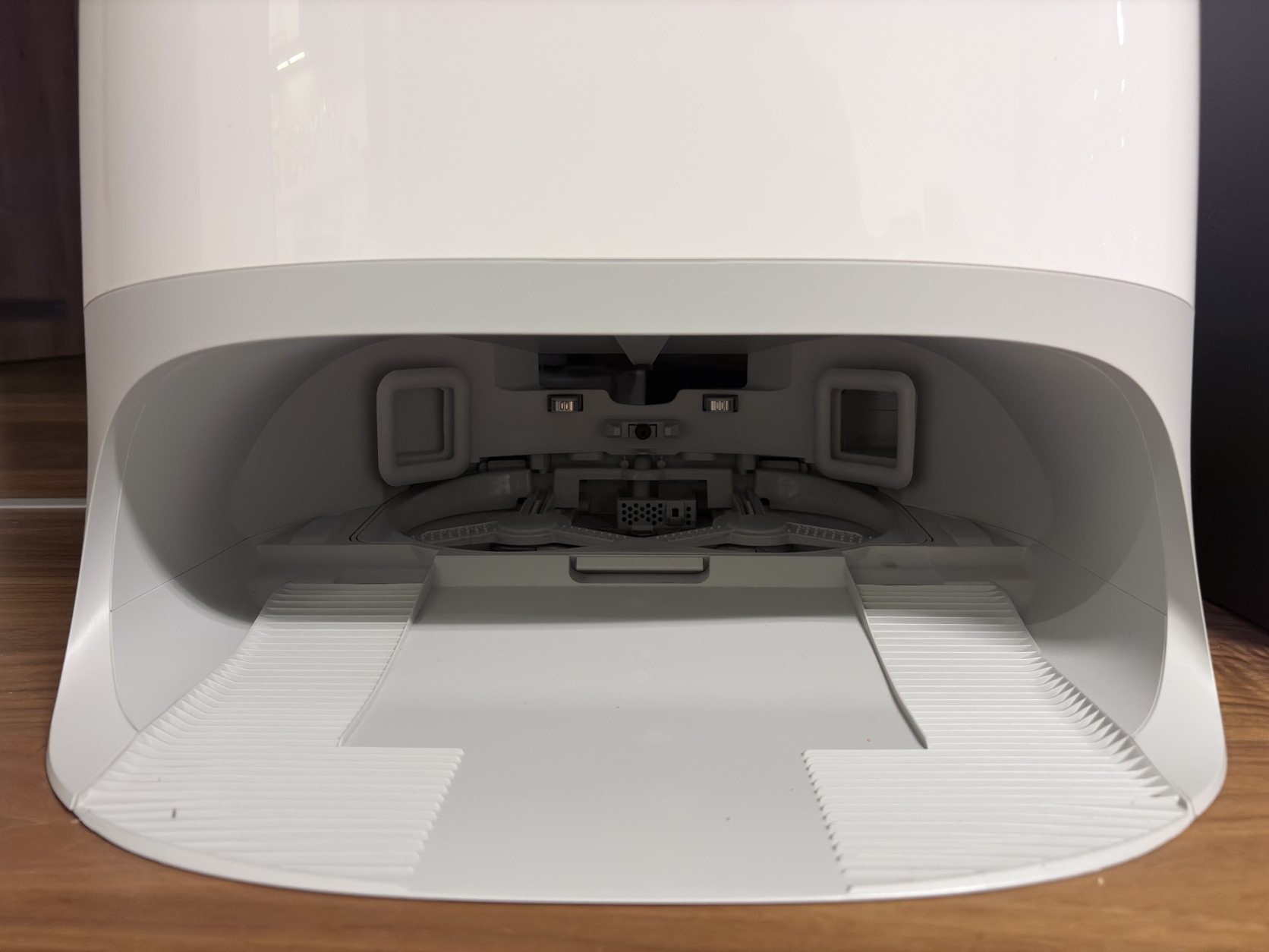 Robot Vacuum animal hair, for all floor types, battery type: Li-ion, operating time: 220 min, charging time: 3 h, noise level: 61.49 dB, dust container volume: 0.325 l, automatic charging, shock sensor, automatic emptying, cleaning schedule and automatic mop cover cleaning, number of side brushes: 1, can climb over obstacles up to 4 cm, navigation type: laser and LiDAR, water container and virtual wall, EPA, colour: white.
