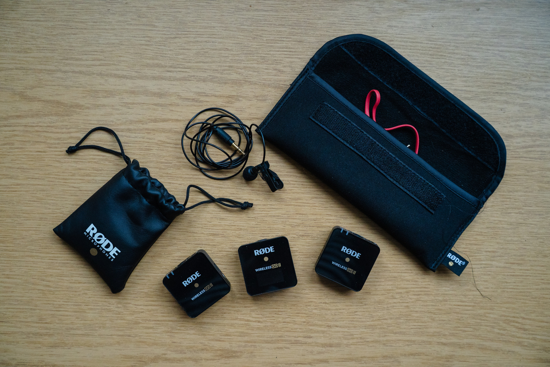 A csomag tartalma:1 db Vevőegység (RX) és 2 db Adóegység (TX) (beépített mikrofonnal és memóriával).1 db RØDE GO prémium csiptetős mikrofon.3 db Szélfogó (deadcat) és 3 db USB-C töltőkábel.SC5 TRS összekötő kábel kamerához.Hordozó tasak és eredeti gyári doboz.