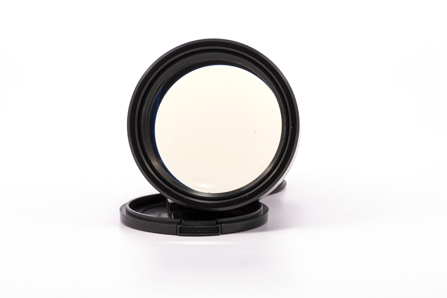 Első és hátsó lencsevédő kupakkal.