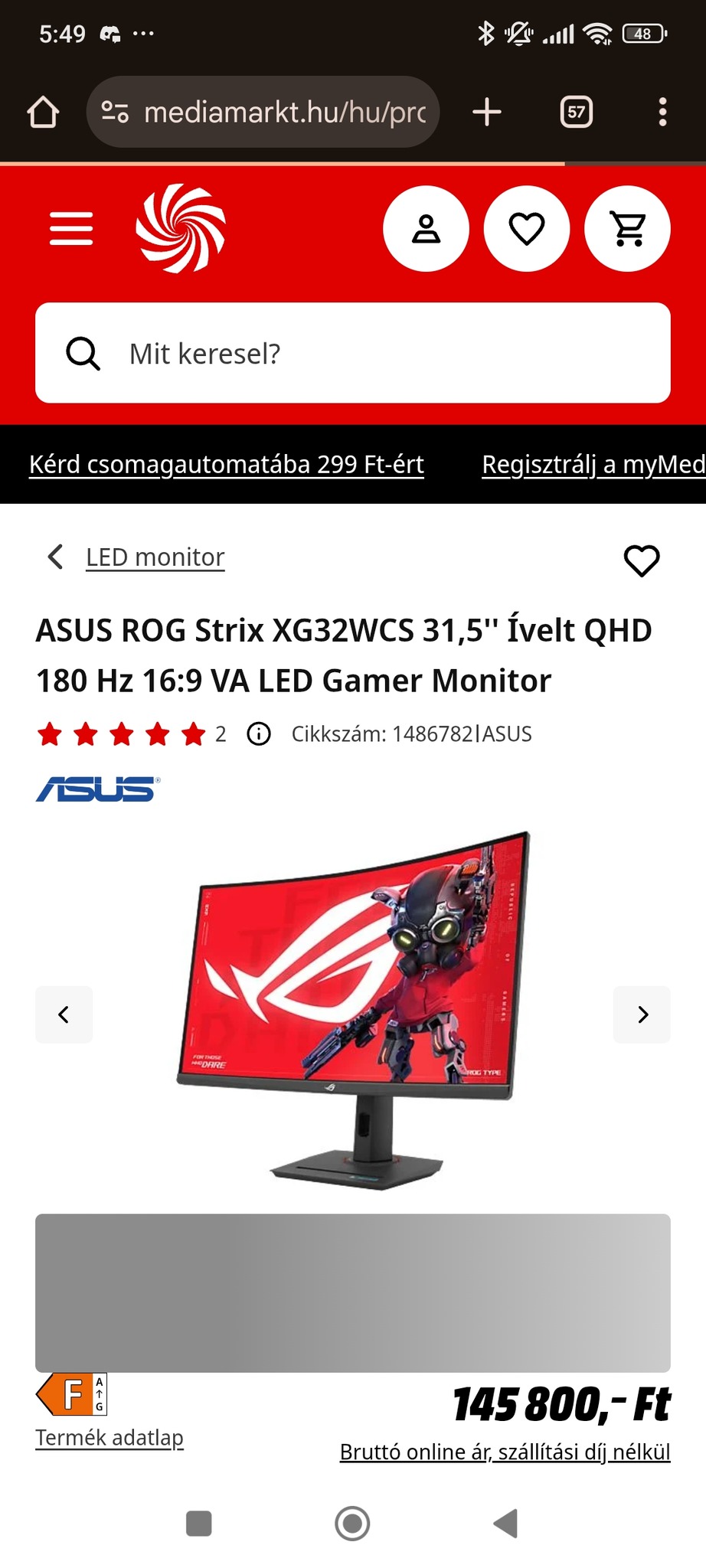 Üdv, eladóvá vált típus váltás miatt megvigyázott karcmentes hibátlan újszerű állapotban lévő keveset használt fent említett 180hz-es 16:9-es, 31.5inches monitorom,+1 év gari,minden hozzá való tartozékkal keresi új gazdáját!