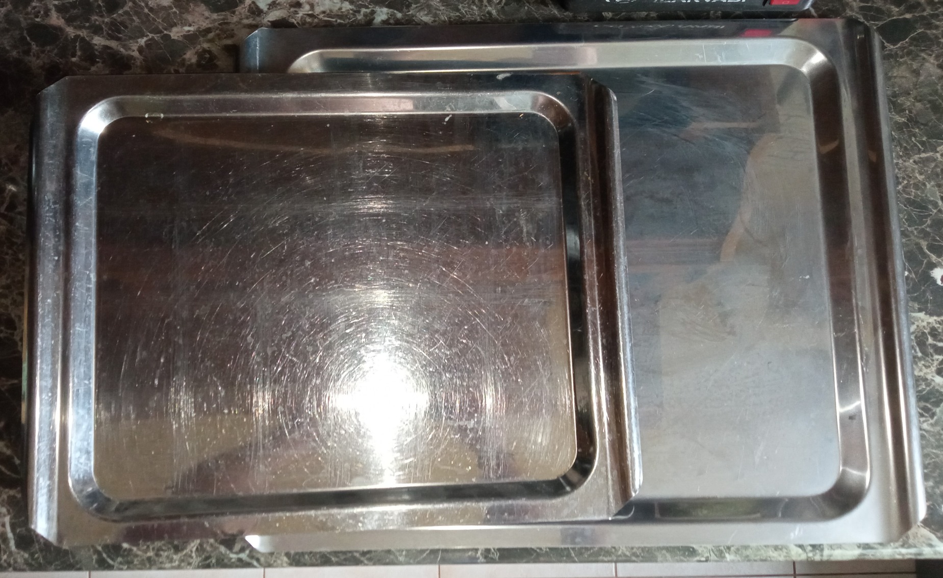 Eladó a képen látható 2 db rozsdamentes tálca.