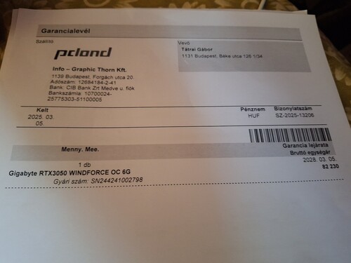 rtx 3050 oc 6gb 3 év garancia