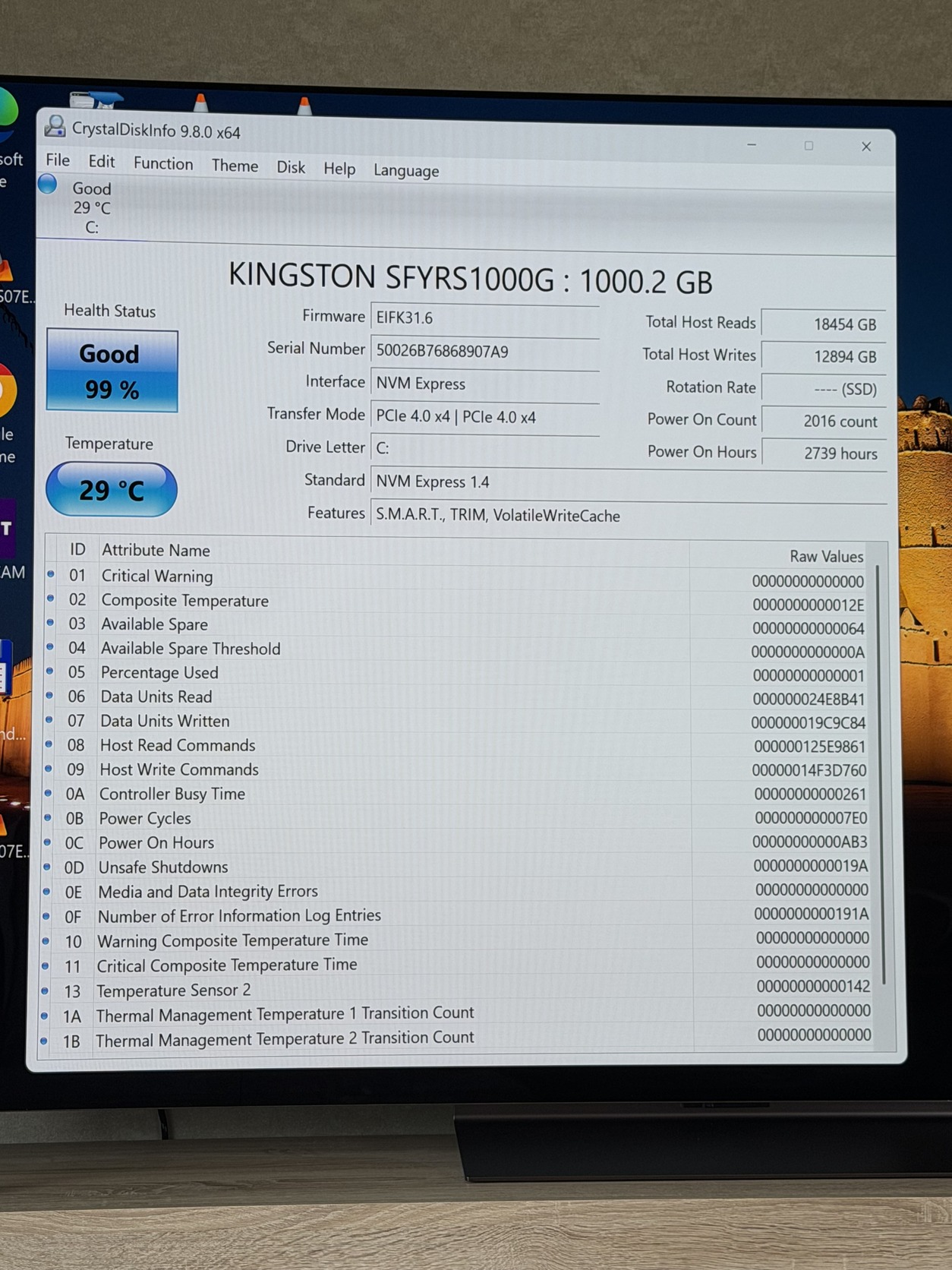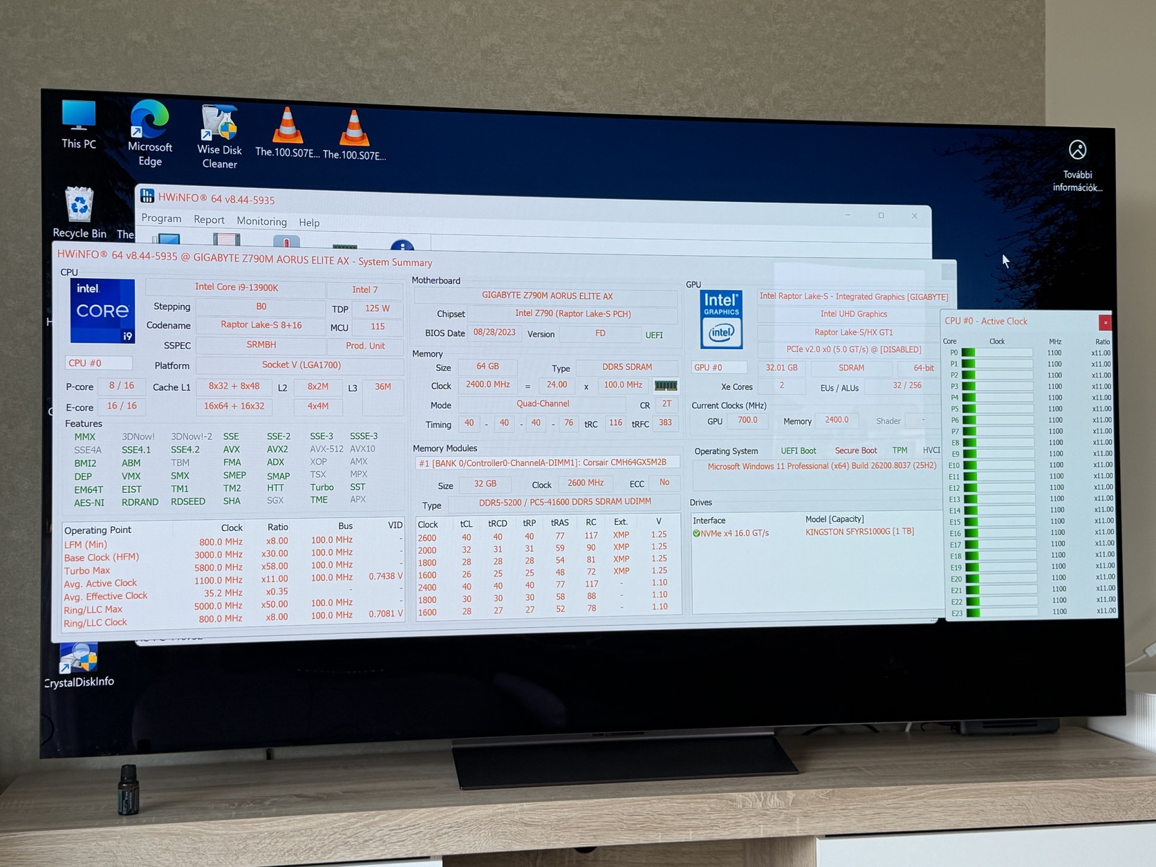 • SSD: Kingston Fury Renegade NVMe 1TB (99%-os kondíció, CrystalDiskInfo-val ellenőrizve)