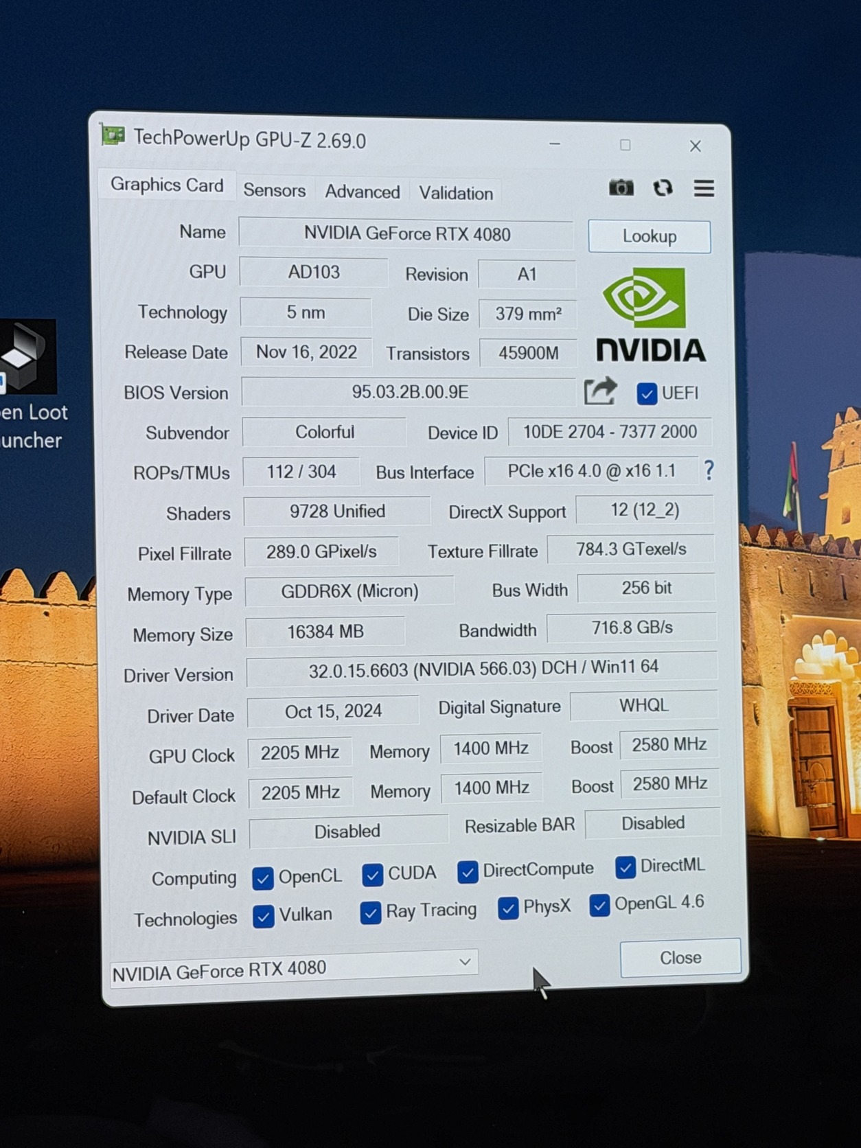 • VGA: RTX 4080 16GB GDDR6X (Colorful BattleAx)