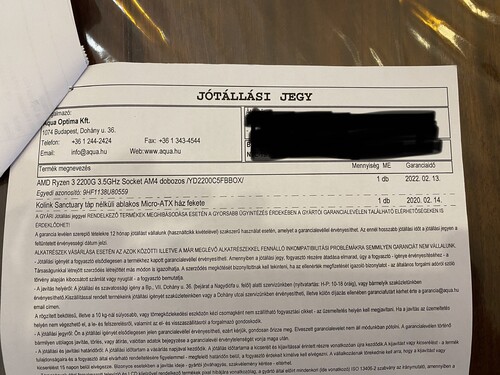 Ryzen 3 2200G Garanciális
