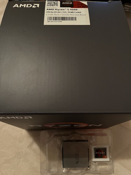 Eladó egy Ryzen 5 1600 processzor dobozával és gyári hűtőjével.