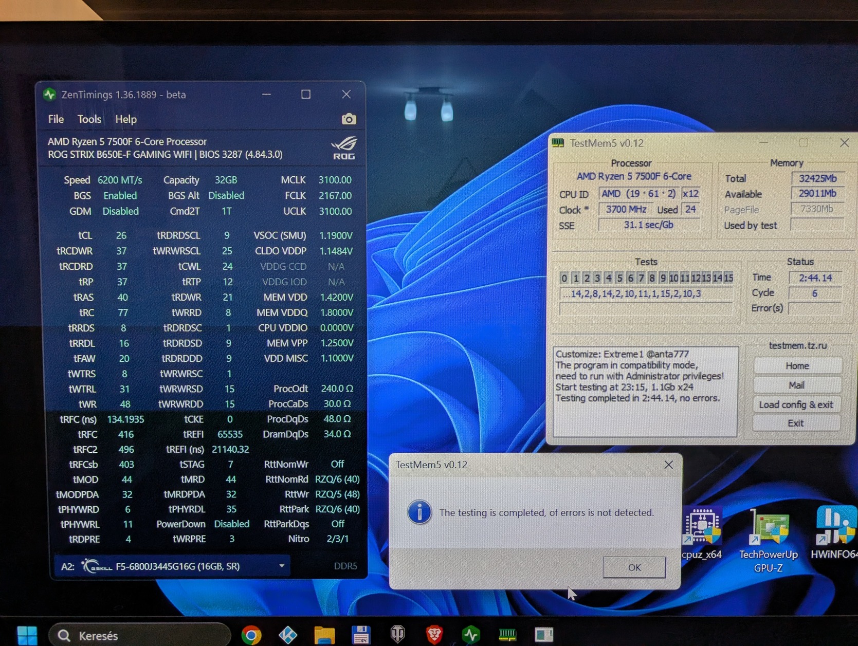 6400 mhz 2200 bclk CL30 időzítéssel lazán megy neki a napi használatban.