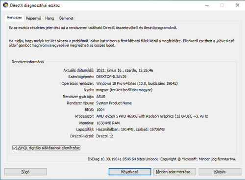 CPU: Ryzen 5 pro 4650G(6 mag 12 szál) + IGP