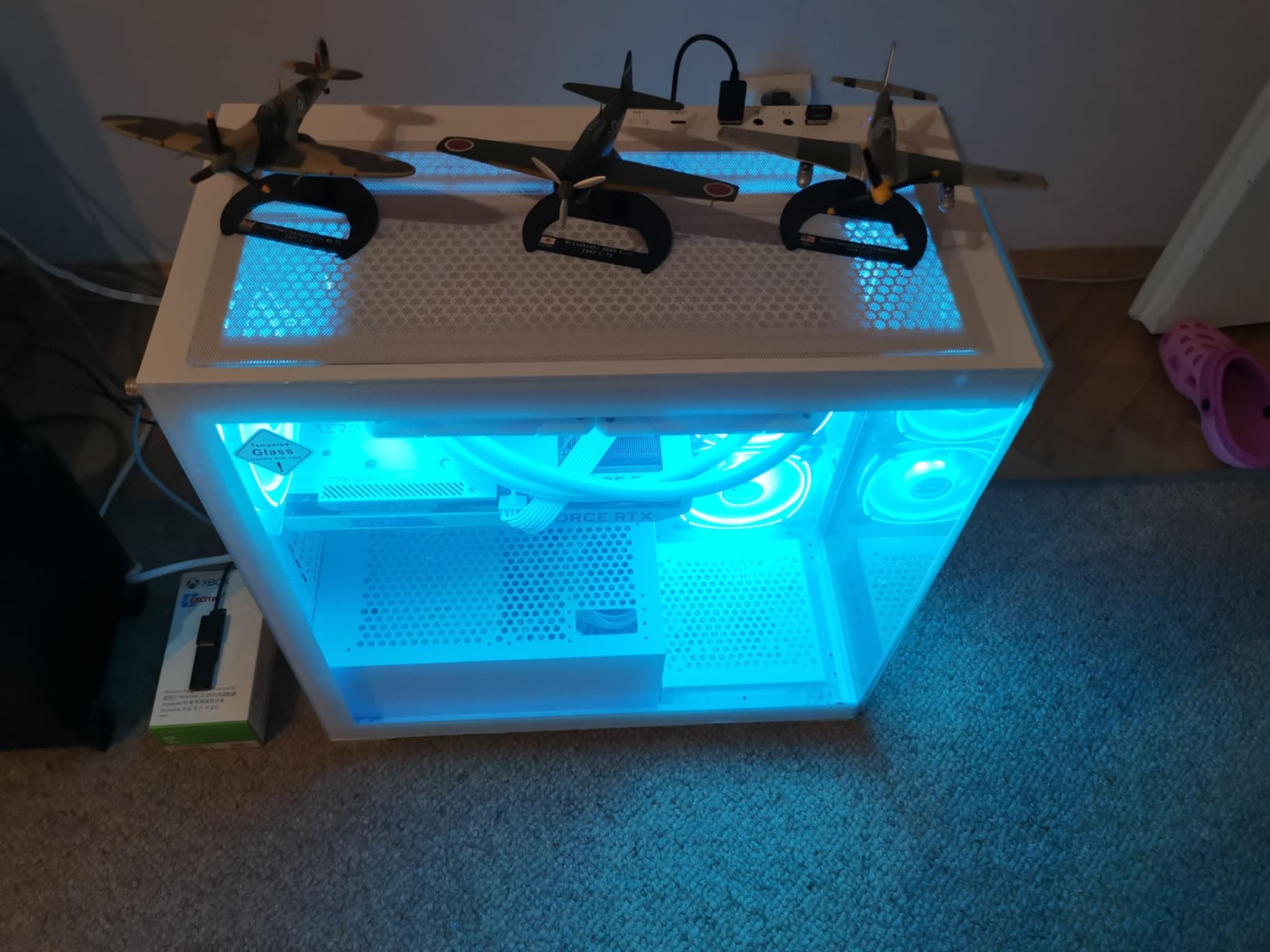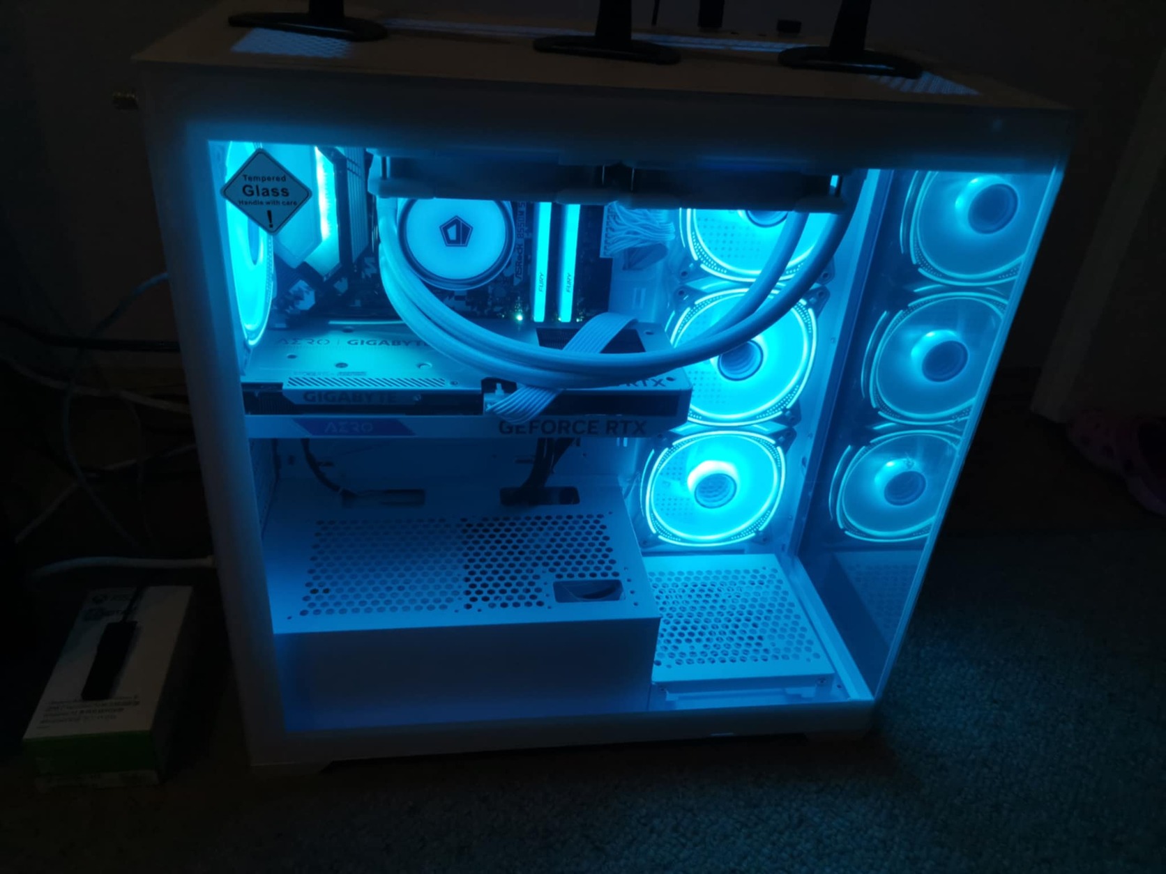 Fehér -acél -üveg színösszeállítás. Élőben még szebb. Jelenleg cián színben világít, de természetesen rgb, minden színben pompázik.