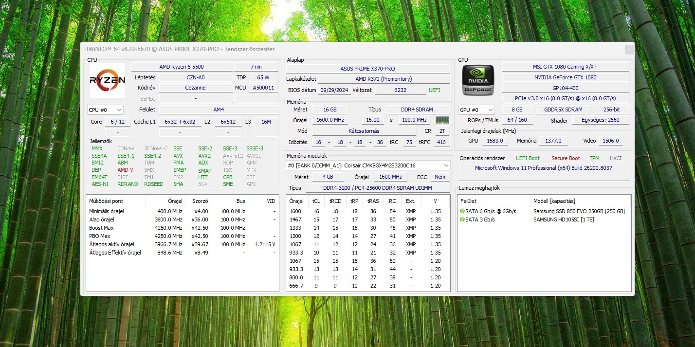 - Alaplap: ASUS Prime X370 Pro (legújabb BIOS, minden AM4-es procit fogad)