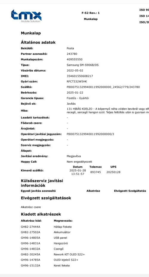 A samsung központi szervízében javították/újították fel.