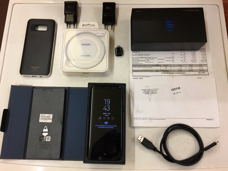 Tartozékok: Doboza, számla,vezetéknélküli töltő, Usb-c kábel, töltőfej,simtű,és egy szép tok.