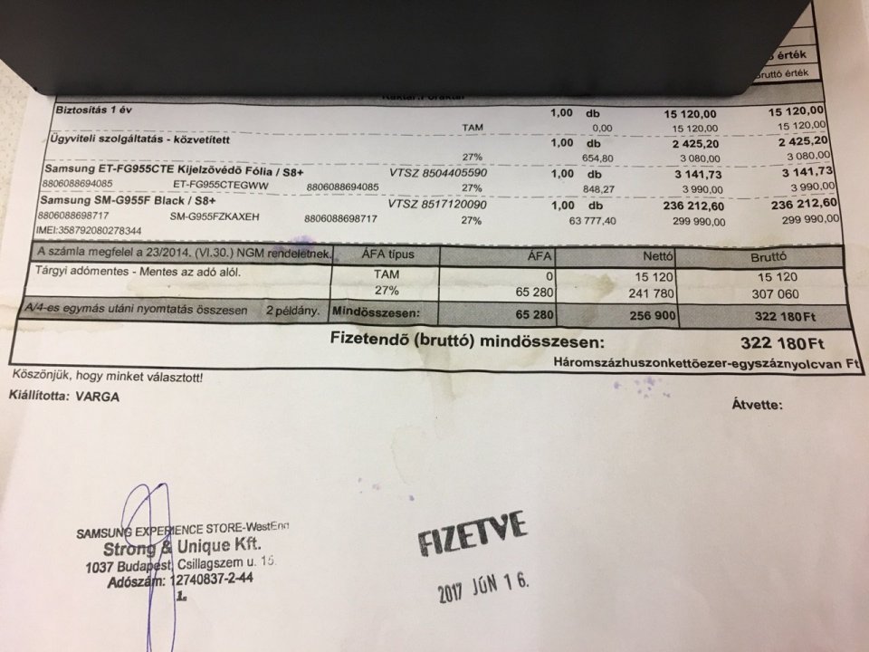 Számlával igazoltan egy összegben lett kifizetve.