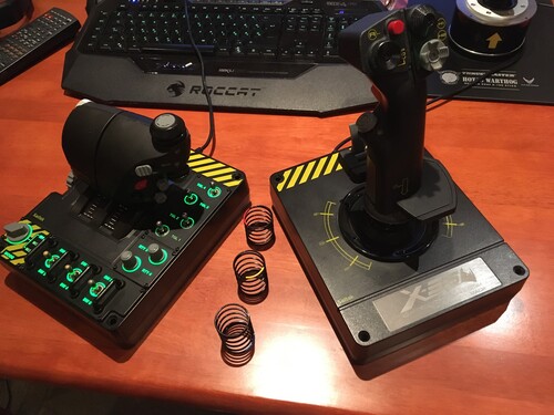 Eladó a képeken látható 2014-ben vásárolt (Ipon.hu) Saitek X55 Rhino hotas controllerem a hozzá járó különböző erősségű cserélhető rugókkal és dobozával.