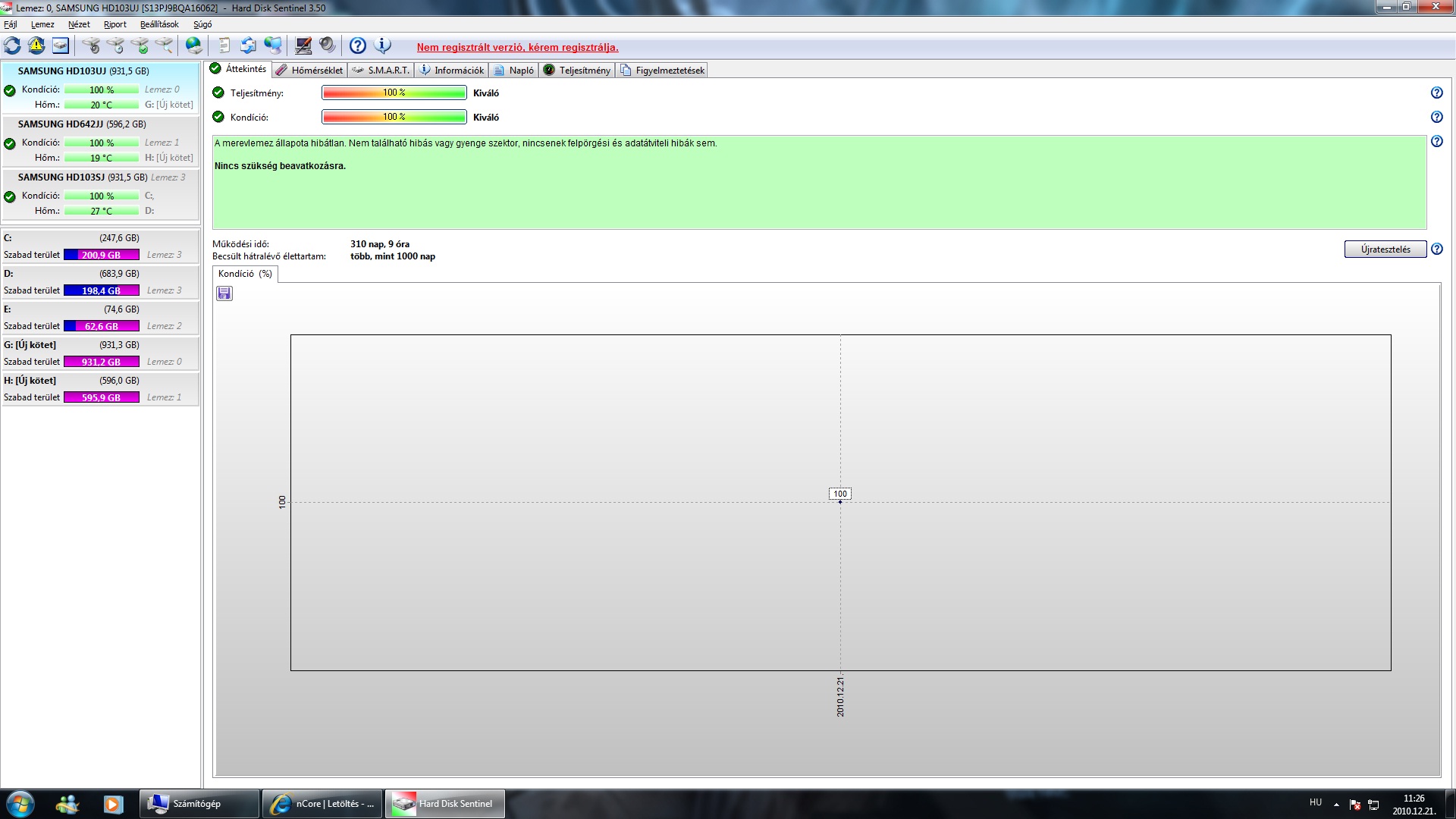 Hard Disk Sentinel: 100%, 100%