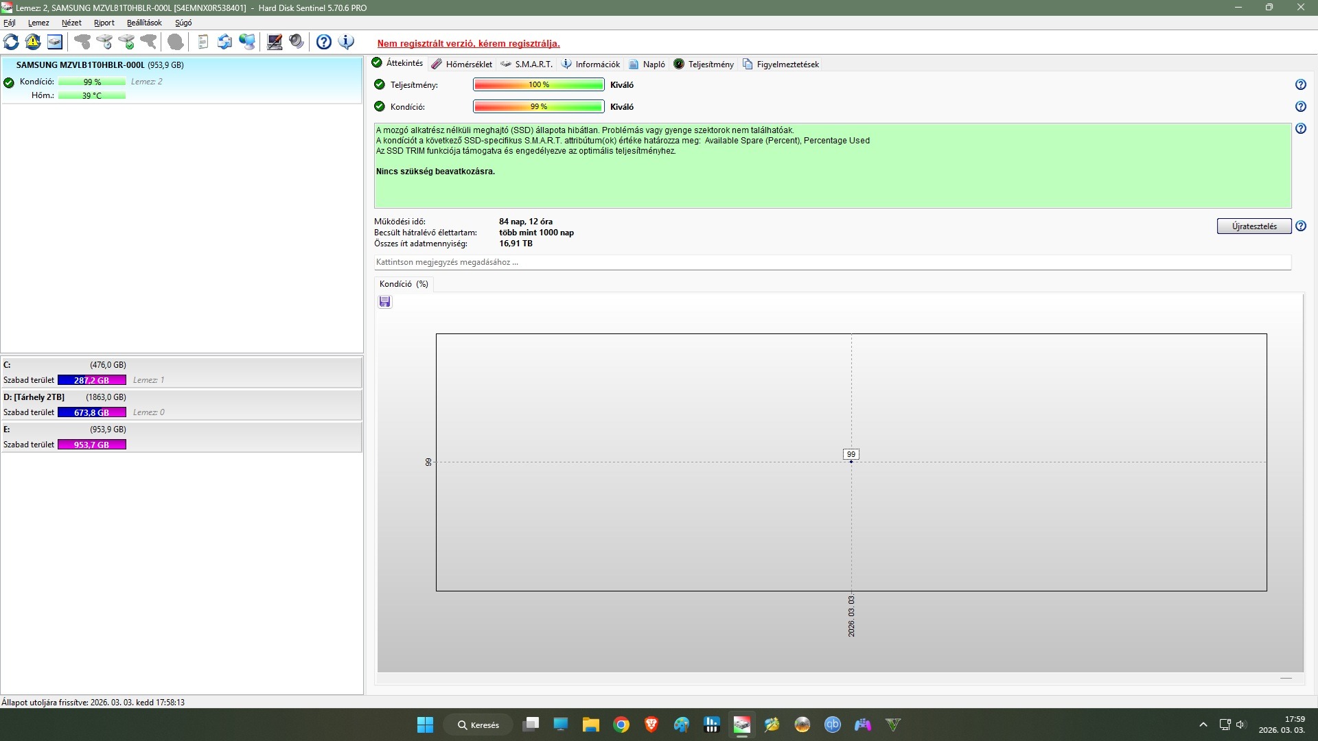 Pontos Típus: Samsung PM981A MZVLB1T0HBLR-000L