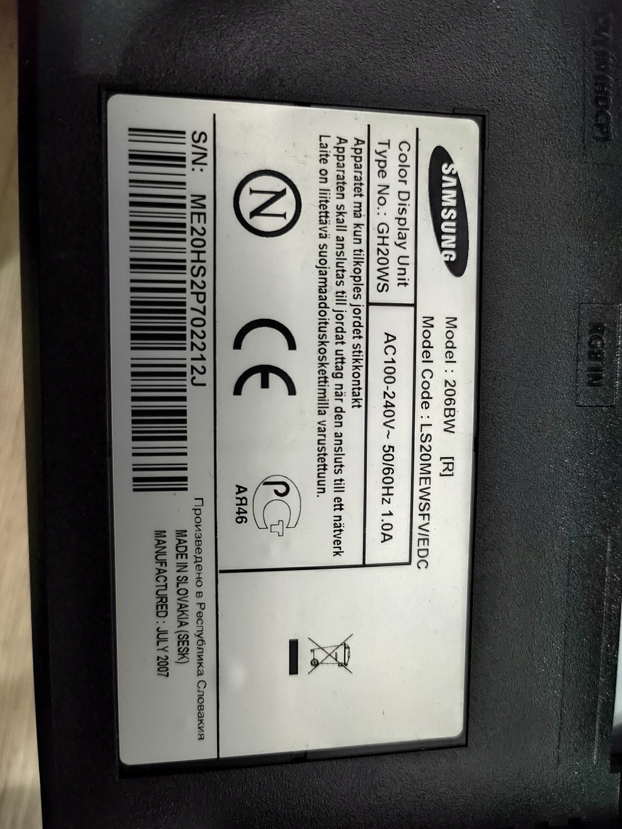 Samsung 206BW 20"