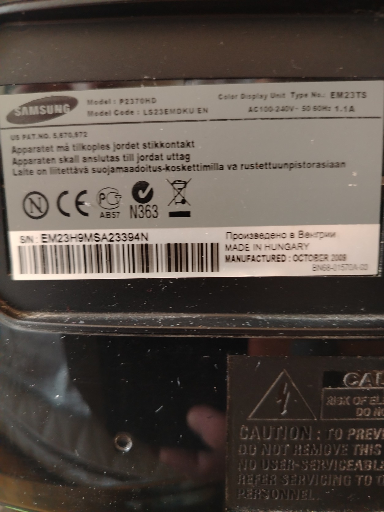 Samsung P2370HD 23"/58 cm képátló, 1920x1080 full HD monitor TV eladó.