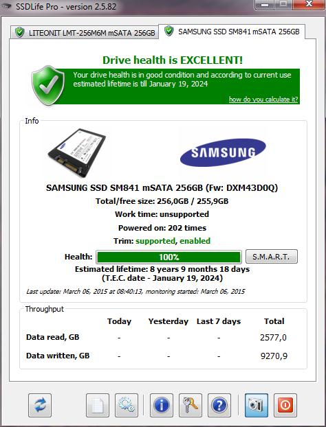 Samsung 256Gb mSata-Sata SSD *jegelve*