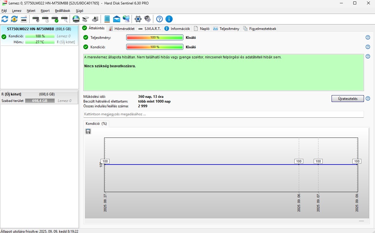 Hard disk sentinel értékelés: 100 / 100