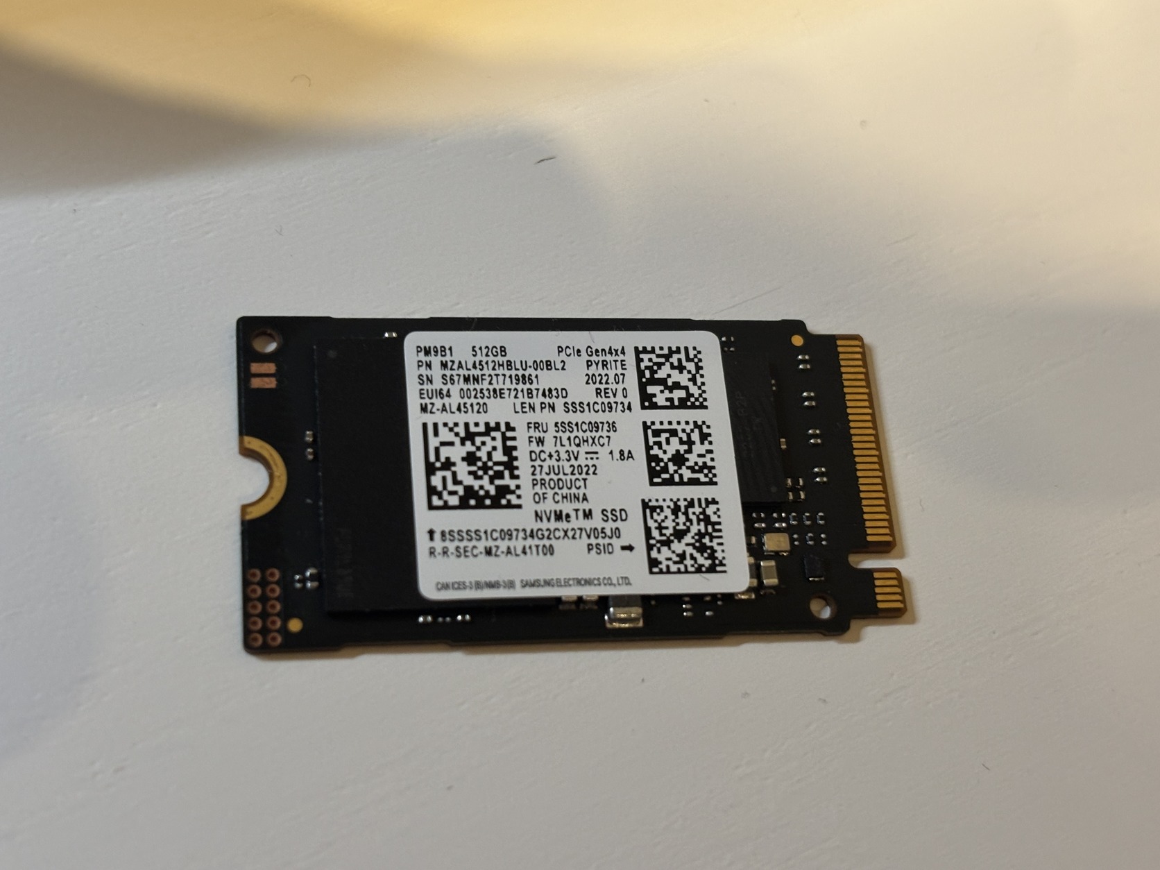 Samsung 512gb 2242 ssd 100/99