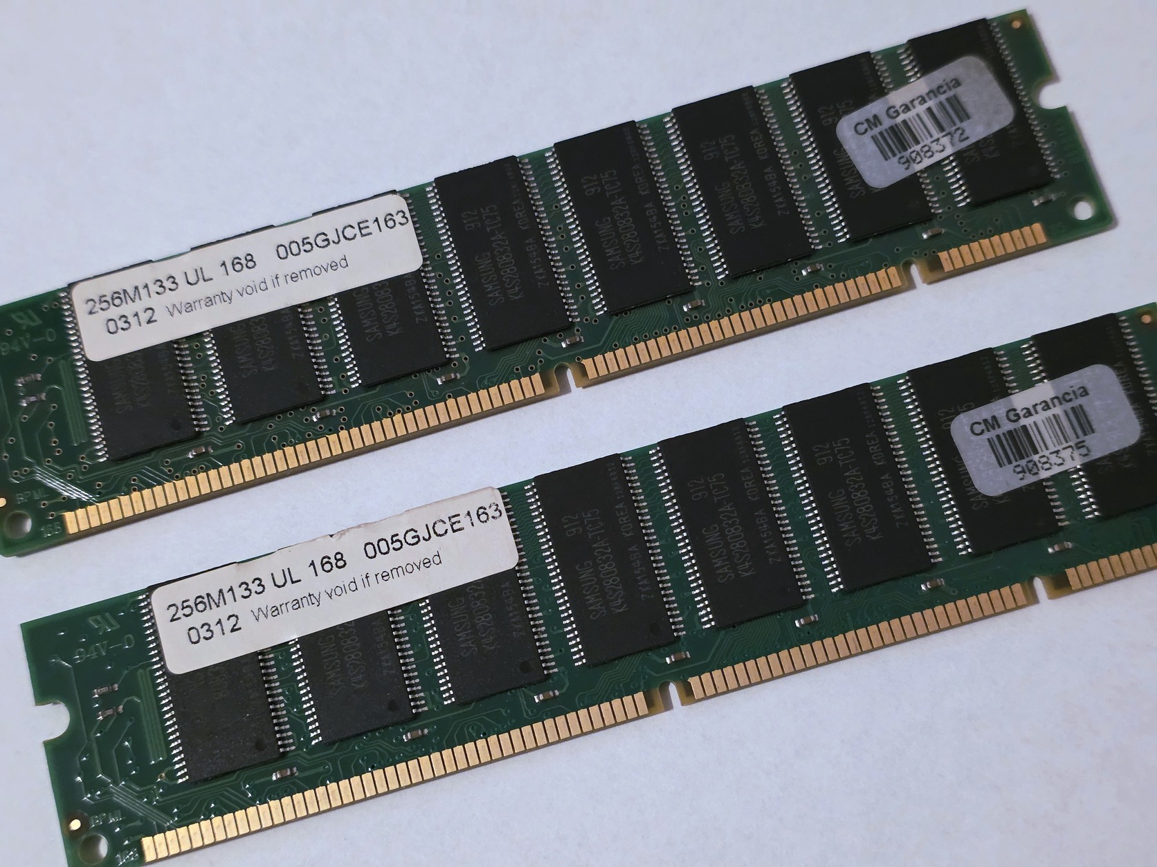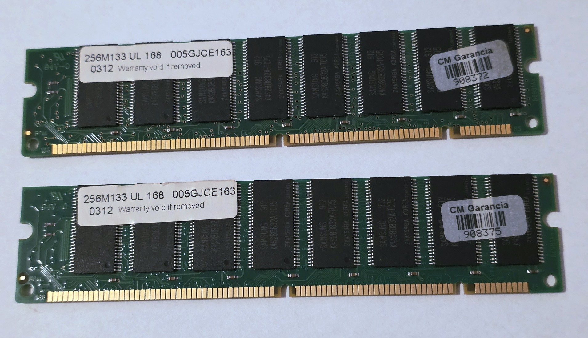 Igazi ritkaság: Matching Pair, azaz gyári párosítás! Mindkét modul azonos gyártási hétről származik (kód: 0312), azonos chipekkel szerelve. Ez a stabilitás garanciája a kényesebb retro alaplapoknál vagy dual channel rendszereknél.