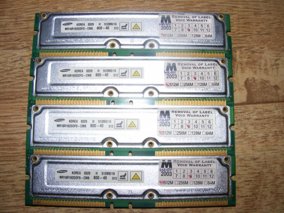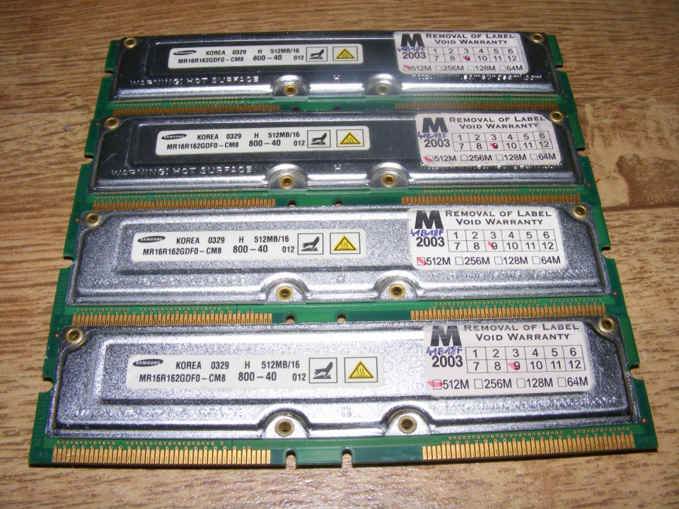 Eladóvá vált 4 db Samsung 512 Mb rambus ram, ritkább fajta.