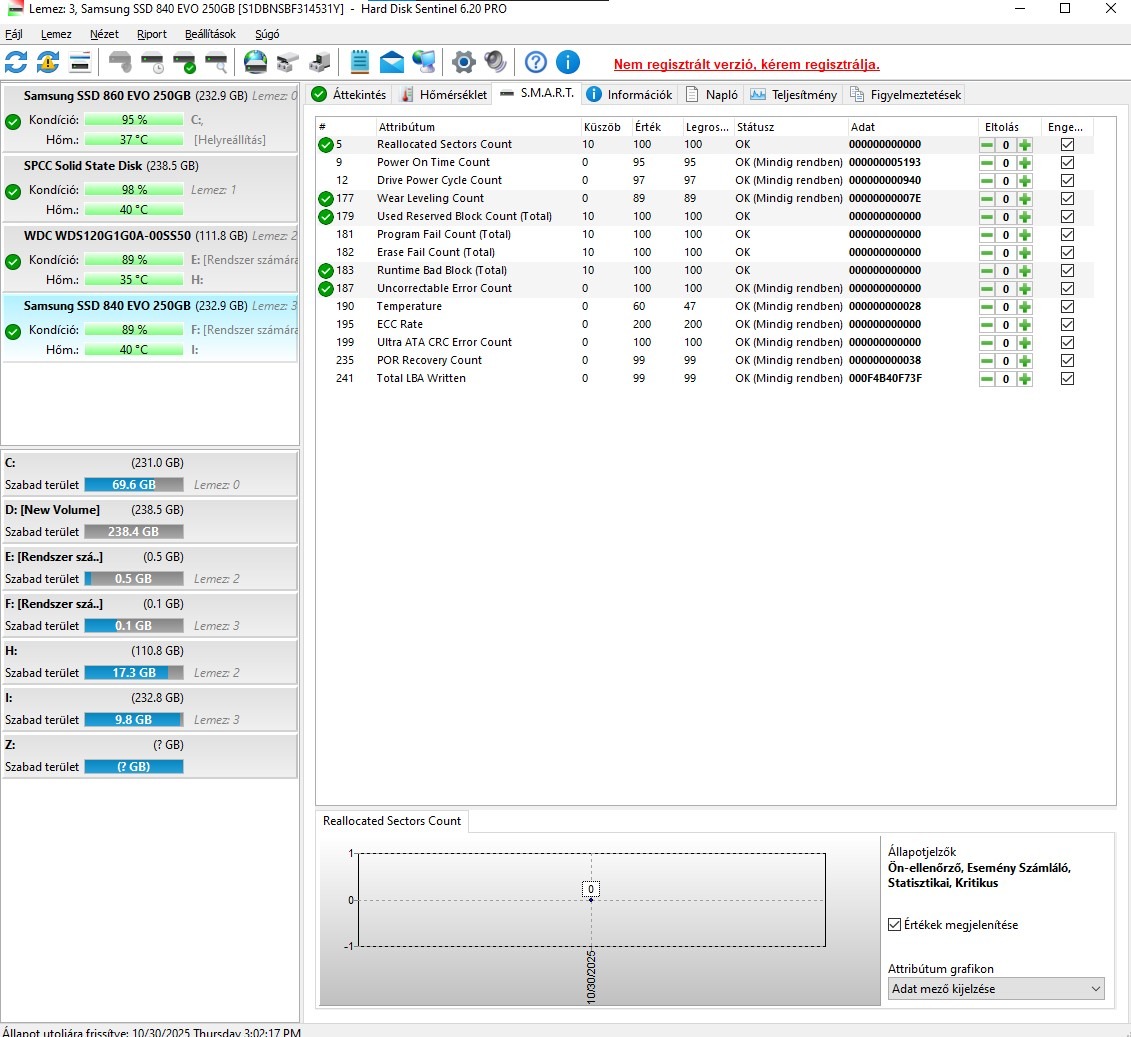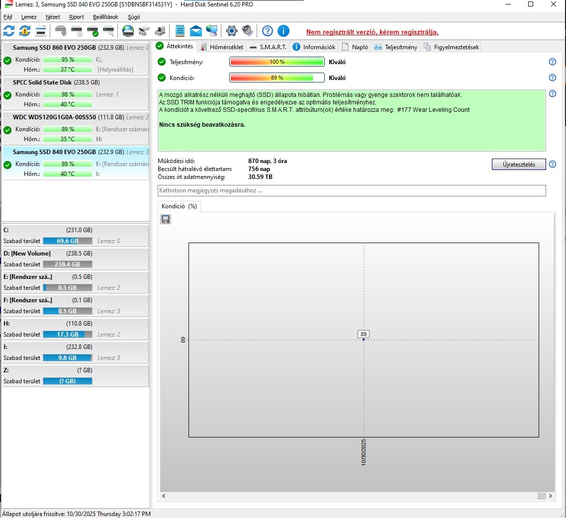 Eladó lenne egy Samsung 840 EVO 250GB 100/89-es hdsentinel értékkel