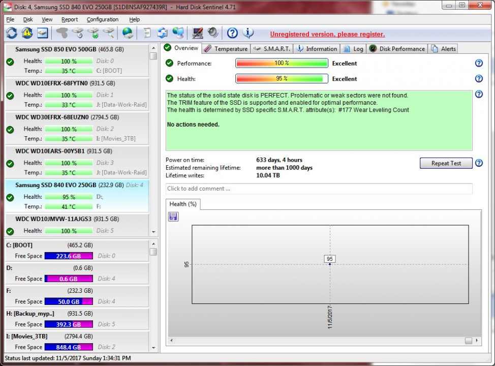 - az 5% kondíció csökkenés az írás mennyiség miatt van. Nincs hibás szektor/blokk.