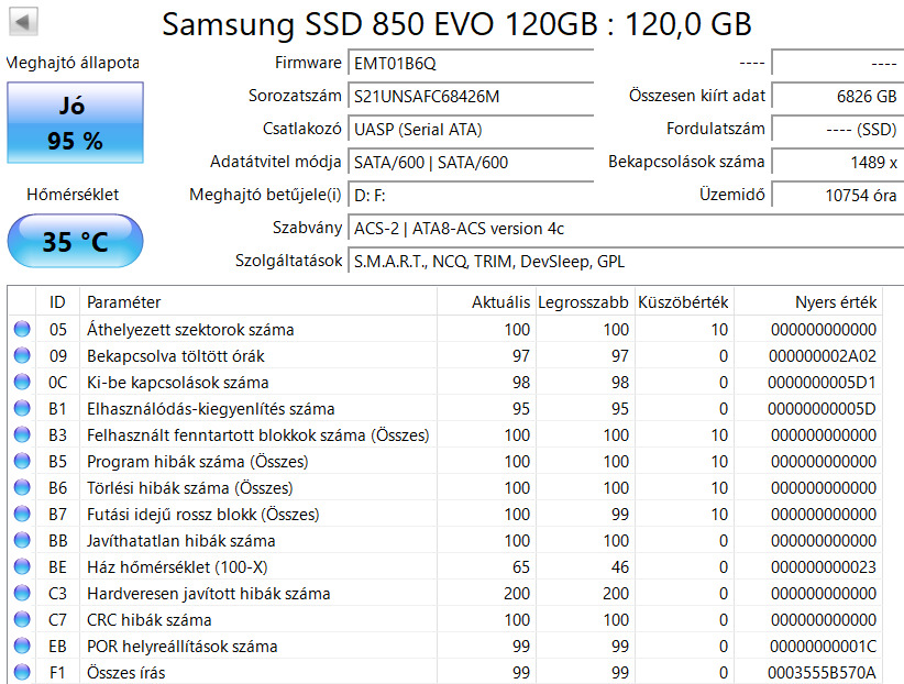 Samsung 850 EVO 120GB 95%