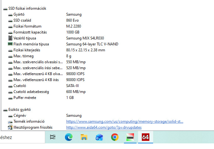 Maximális SSD írási sebesség 520 MB/s