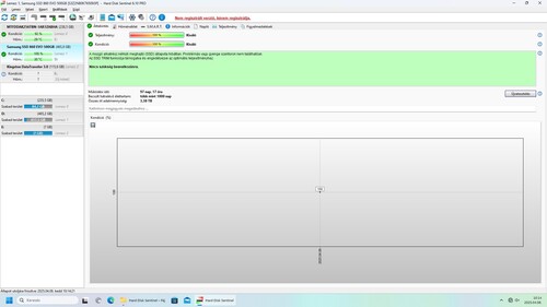 Nagyon keveset használt. 97 nap működési idő, 3,38 TB összes írt adatmennyiség.